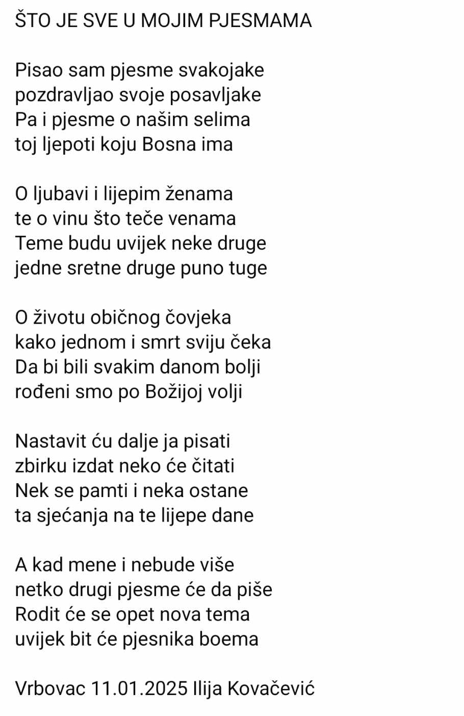 KOVACEVIC ILIJA STO JE SVE U MOJIM PJESMAMA 1 min read 11 months ago Marko Majic M.Majic Marko Majic See author's posts NOĆI SU MI U BIRTIJI SREDNJOŠKOLSKI DANI POSAVSKA SUZA I PONOS TRAŽIM TE NA JASTUKU Post navigationPrevious HVALA TI NA SVEMUNext Ljubomora ili sto vec